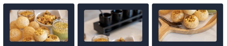 Look at this section with a responsive listing of the famous Indian dish Pani Puri. On desktop or wider screens, we want a portrait image while on mobile we prefer a landscape image.